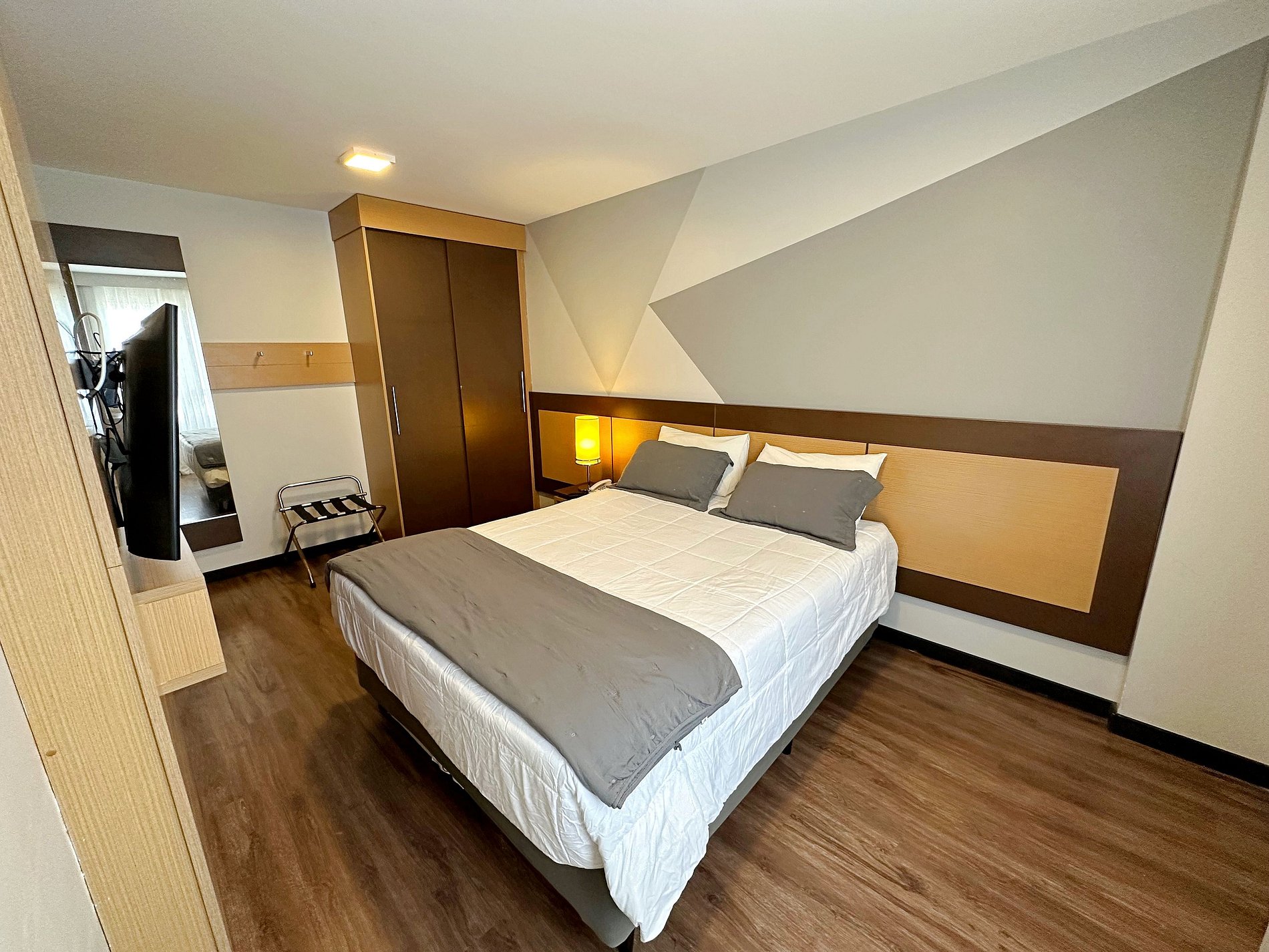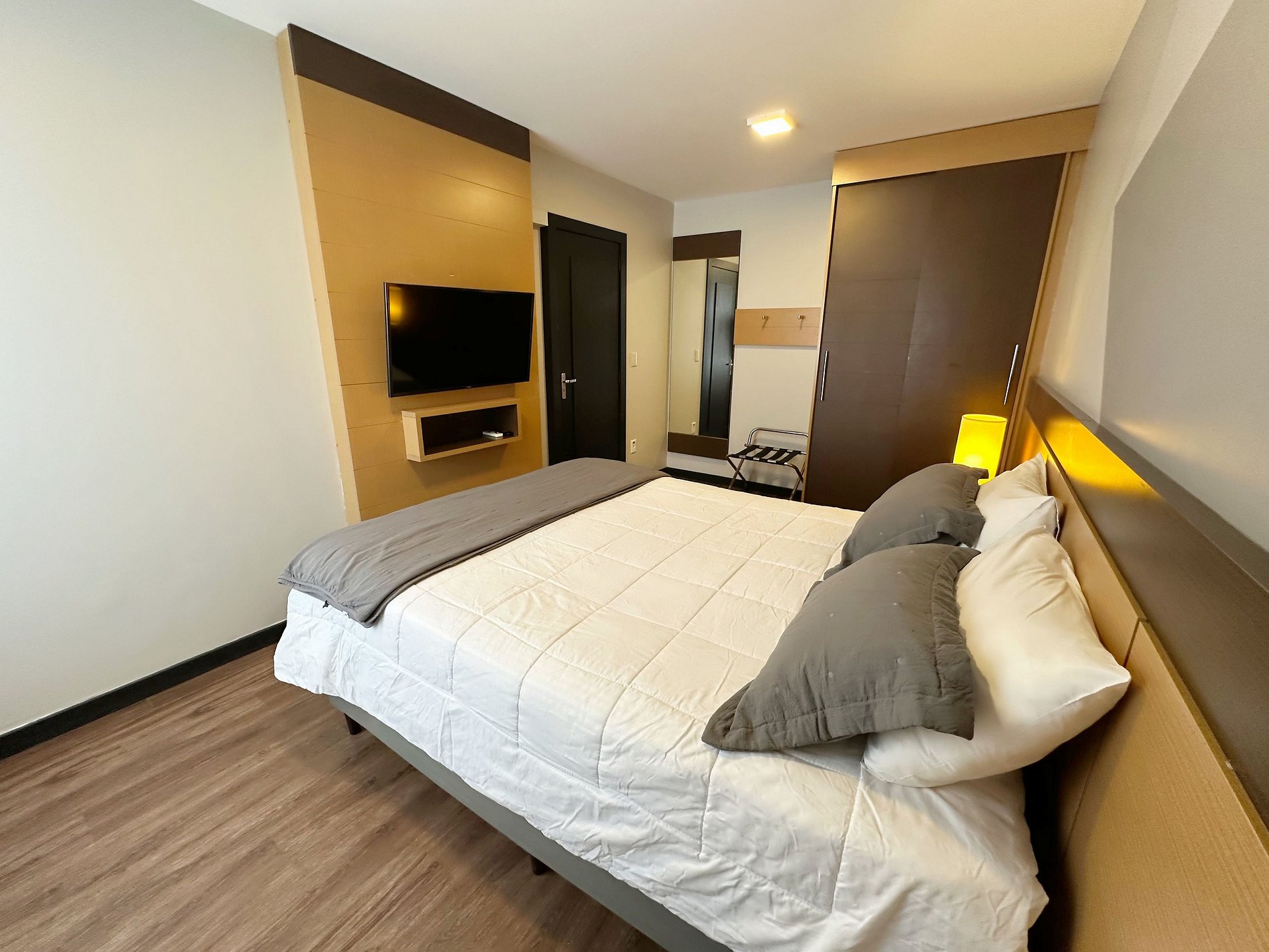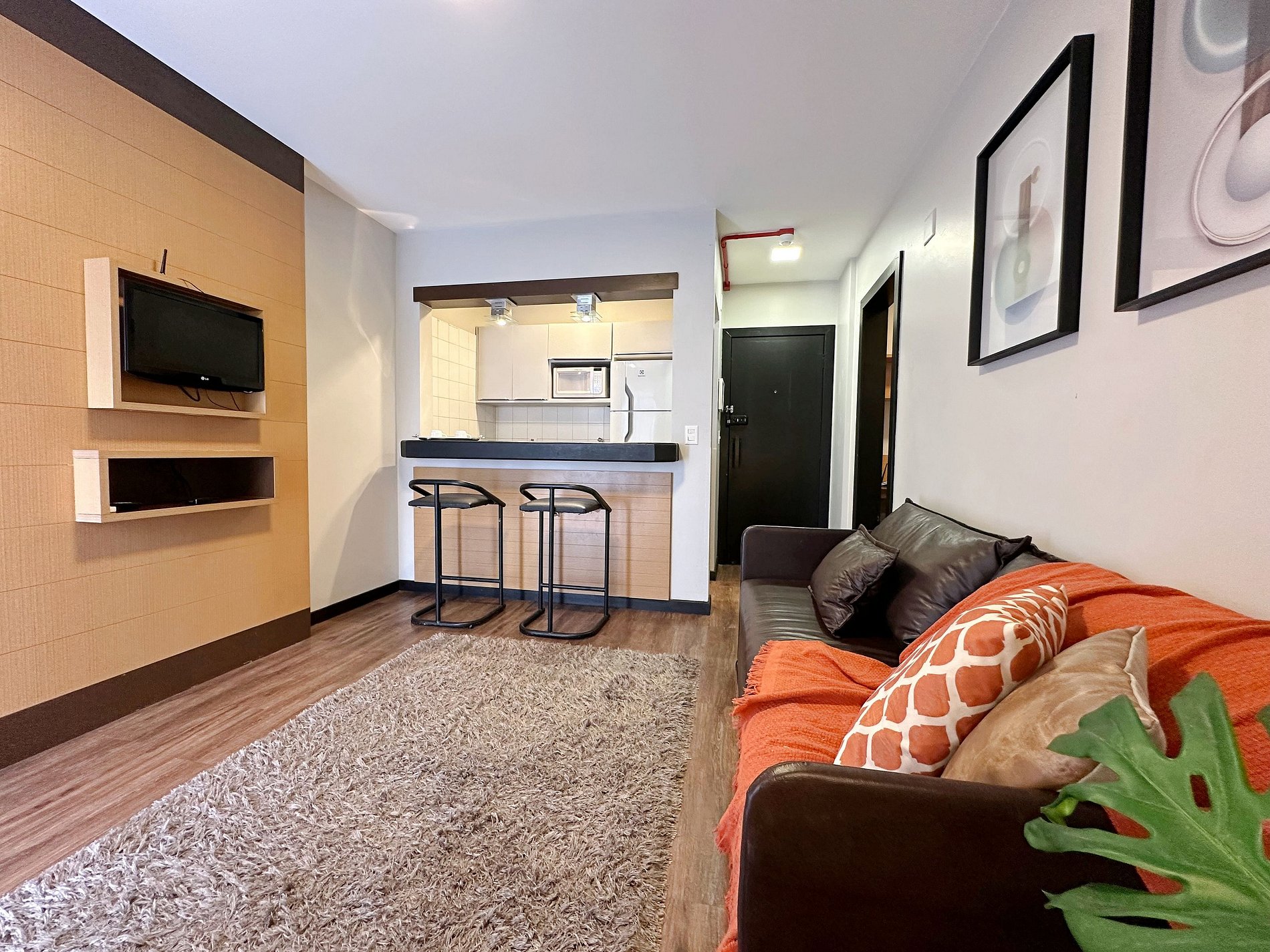 Condomínio dispõe de piscina, academia, lounge de convivência, business center além do serviço de arrumação básica já incluso e recepção 24 horas.