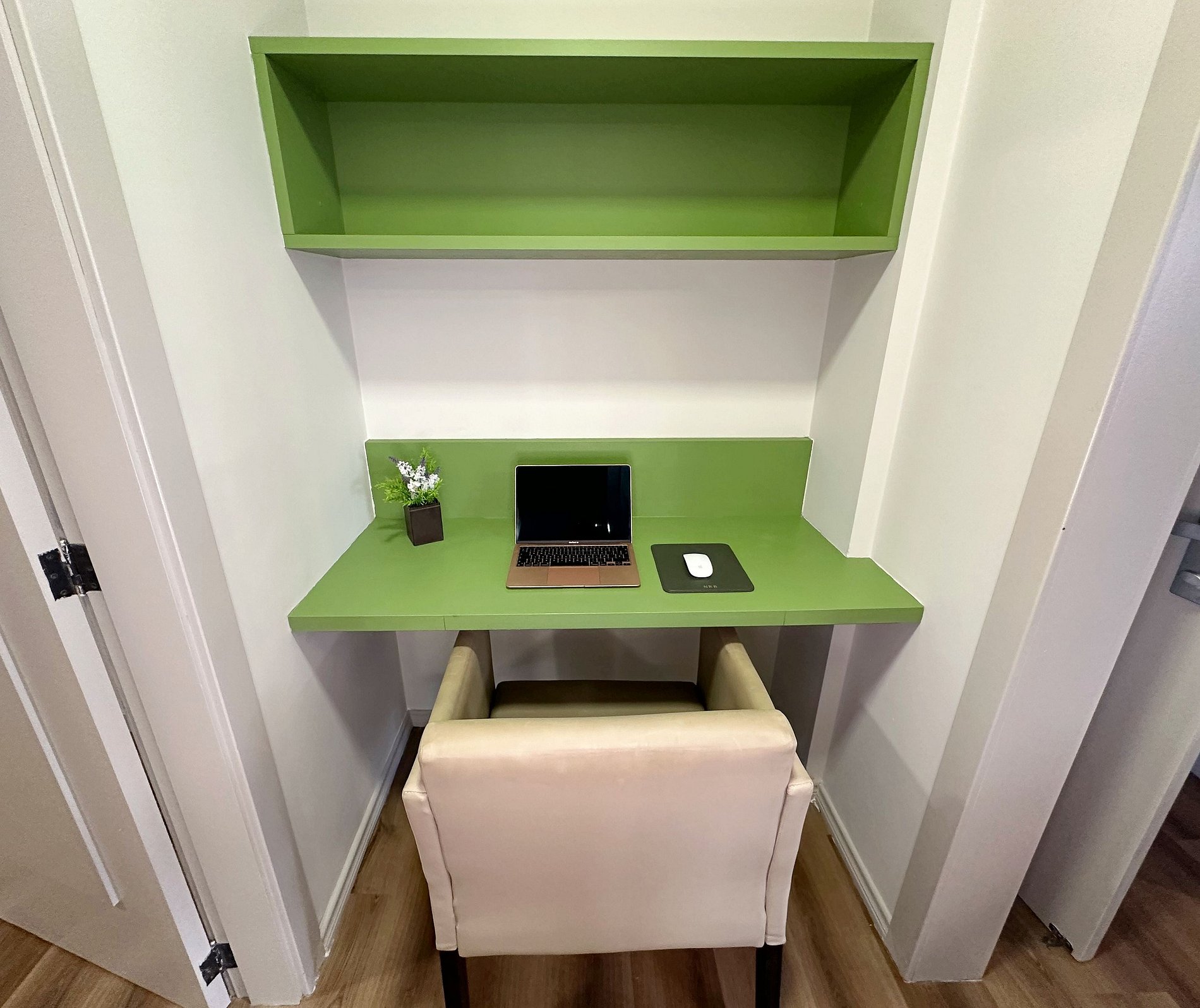 Dispõe de 1 quarto com cama Queen, sala, cozinha, espaço para utilização de laptop e banheiro.