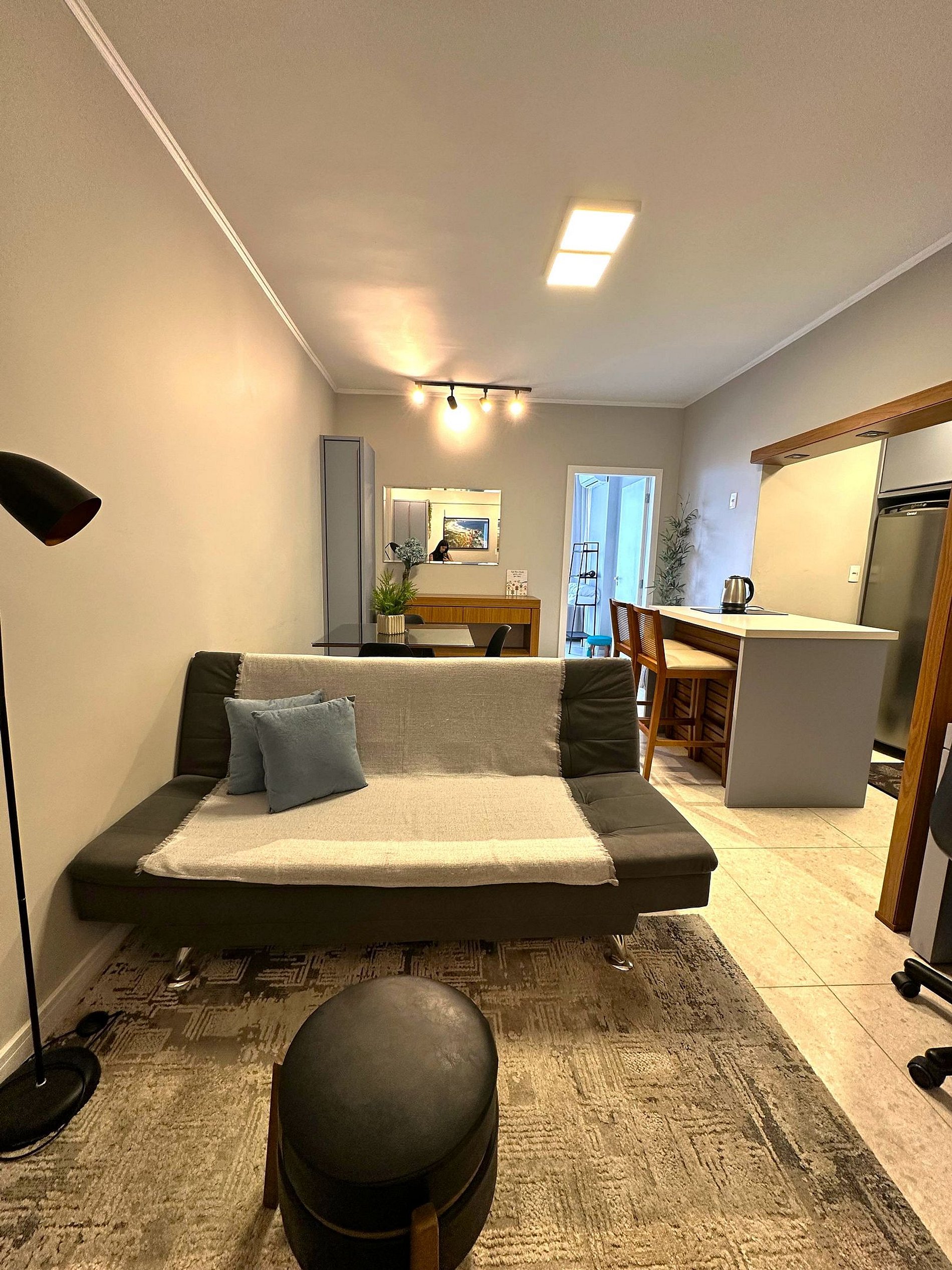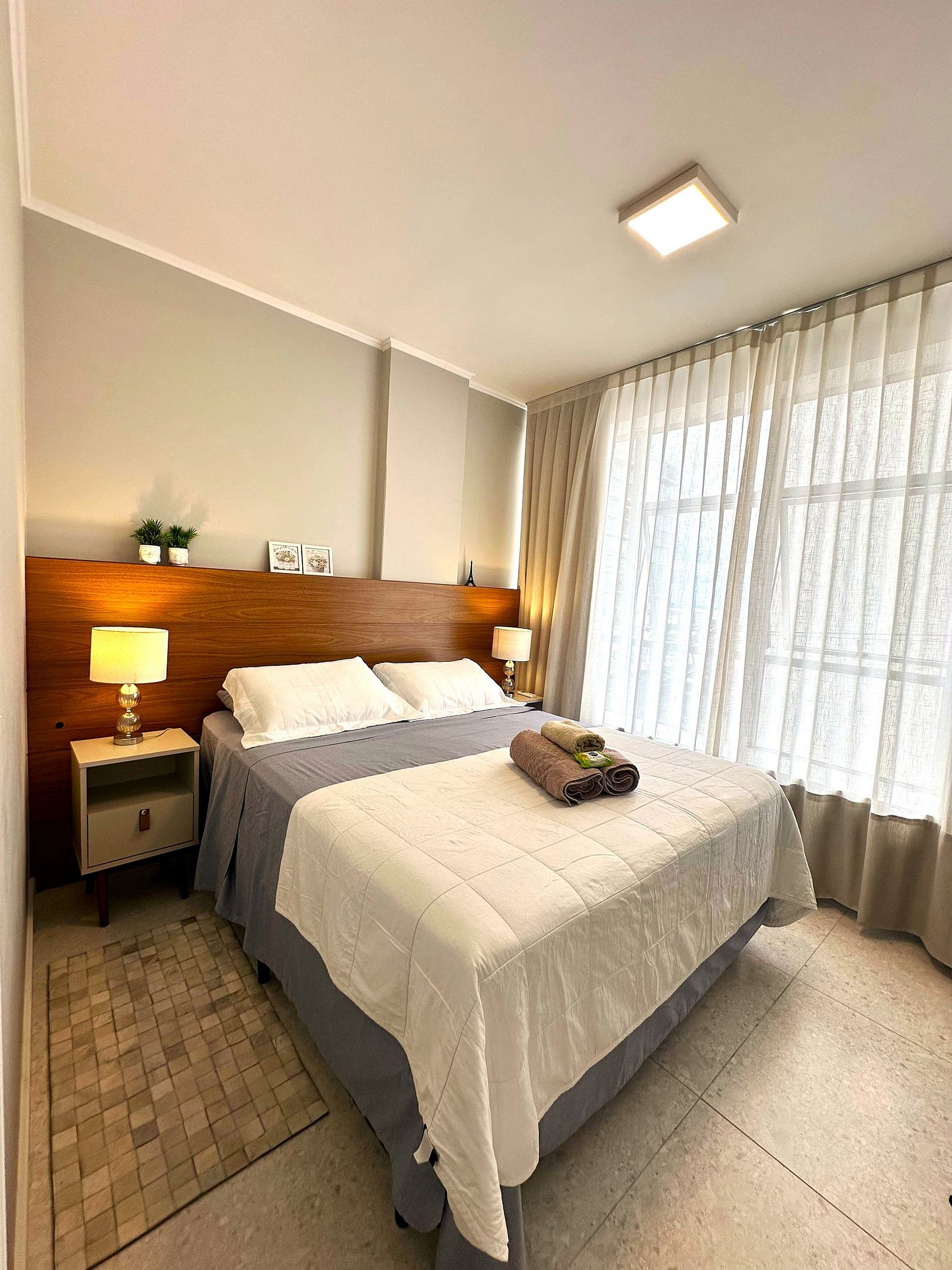 O mesmo dispõe de um quarto aconchegante para casal, guarda-roupas e ar-condicionado. Sala de estar que possui sofá retrátil que acomoda 2 pessoas, com Smart TV, ar-condicionado e mesa para refeições. Cozinha completa com fogão por indução, forno, micro-ondas, geladeira e utensílios básicos que proporcionam uma estadia confortável. Além disso, possui uma máquina lava roupas e um banheiro social.
