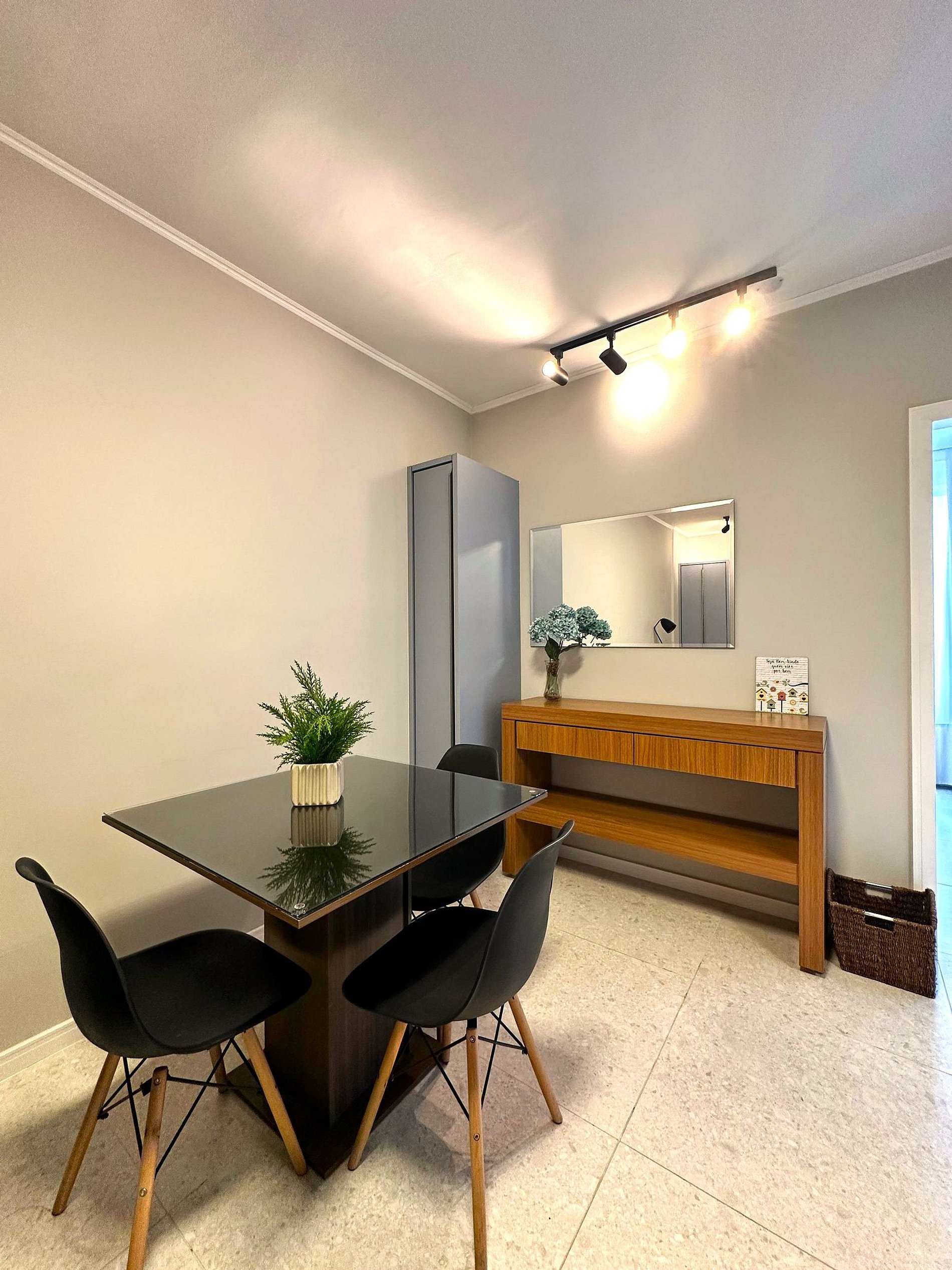 O design clean e moderno torna-o um espaço aconchegante para que se sinta em casa. É perfeito para o conforto de sua hospedagem, o lugar certo para você se encantar ainda mais por Florianópolis.