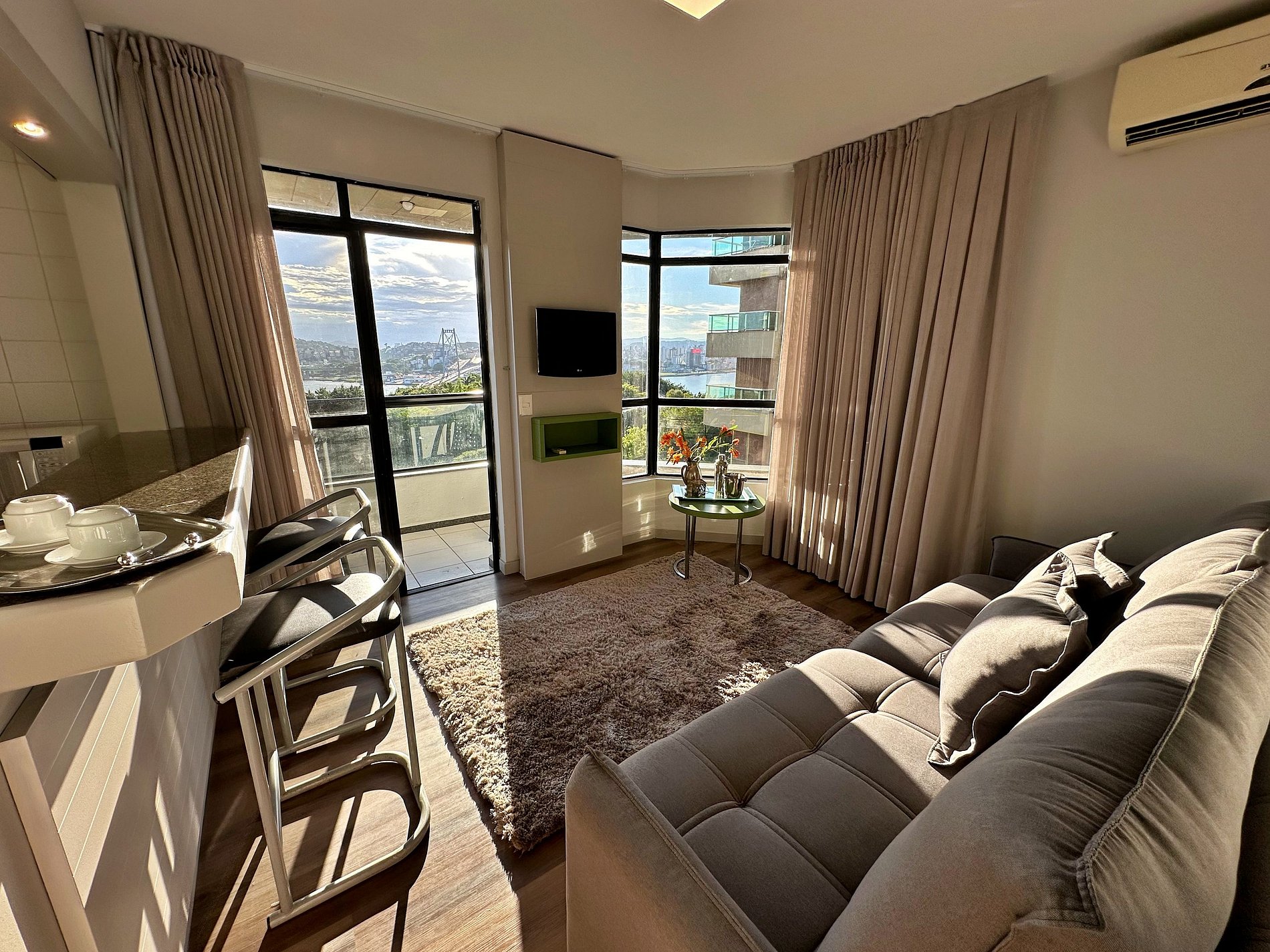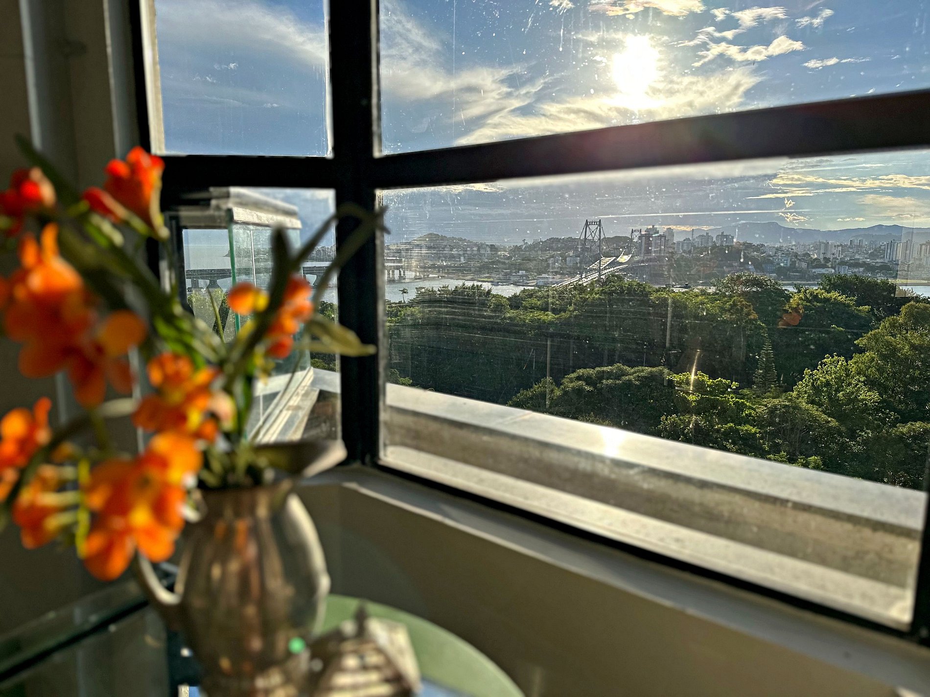 Nossa varanda possui uma linda vista para o mar e Ponte Hercílio Luz. Ideal para aproveitar o final de tarde apreciando a melhor vista de Floripa.
