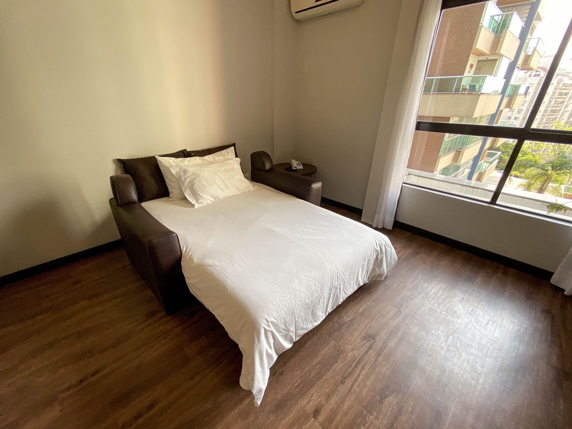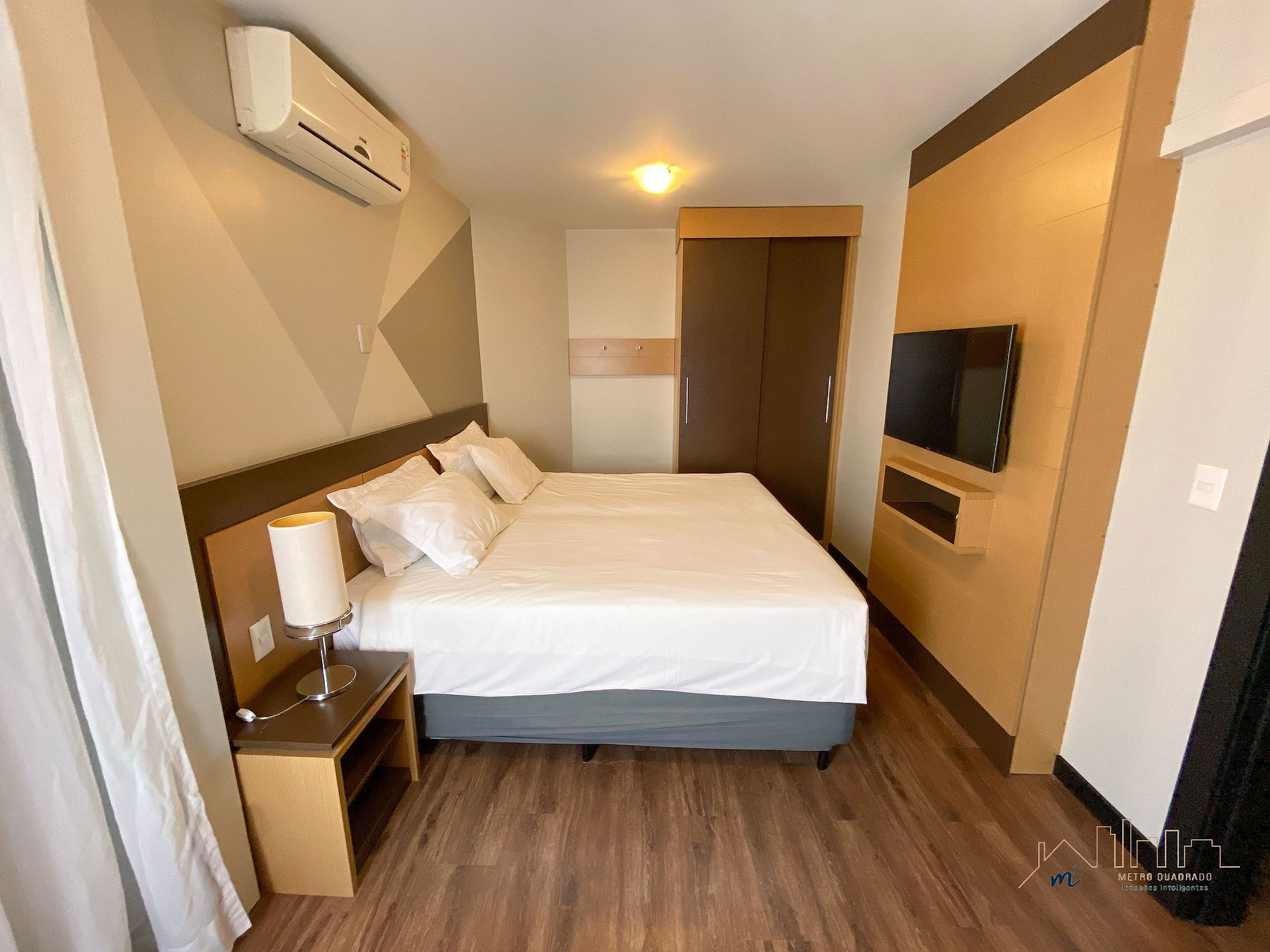 Condomínio dispõe de piscina, academia, lounge de convivência, business center além do serviço de arrumação básica já incluso e recepção 24 horas.