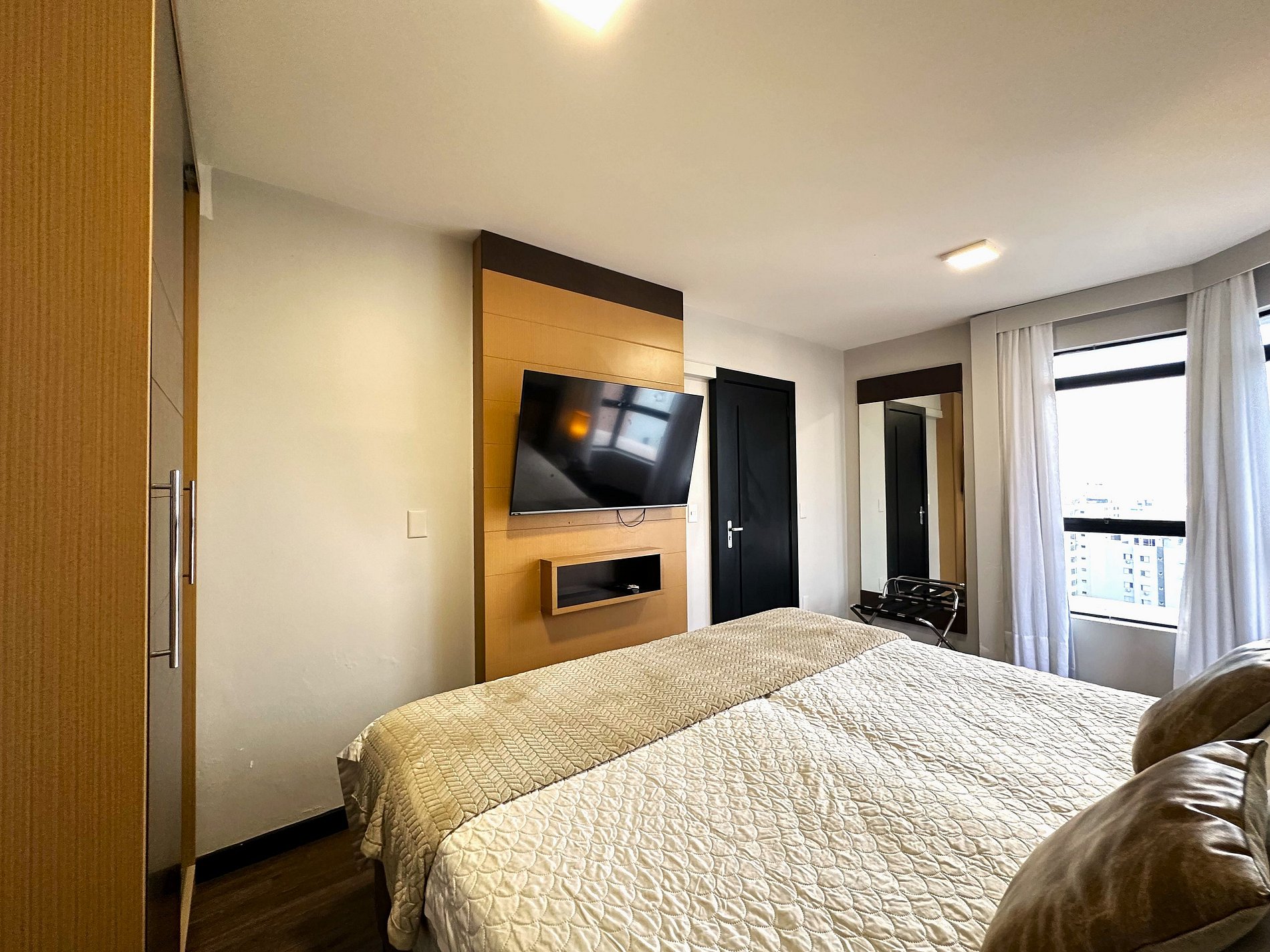 Condomínio dispõe de piscina, academia, lounge de convivência, business center além do serviço de arrumação básica já incluso e recepção 24 horas.
