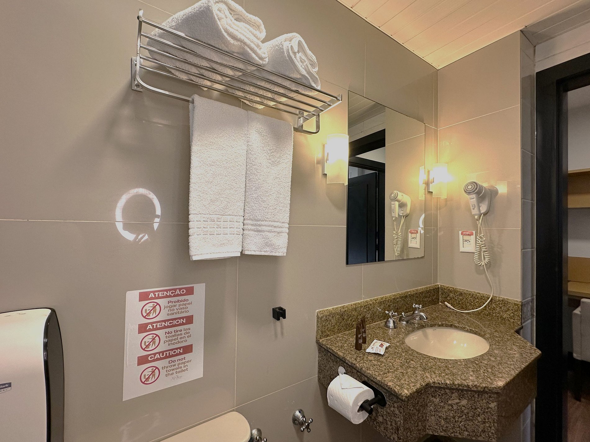 • Observe bem a voltagem dos aparelhos antes de colocar na tomada. Todas as tomadas são 220V e não podem usadas com aparelhos 110V.