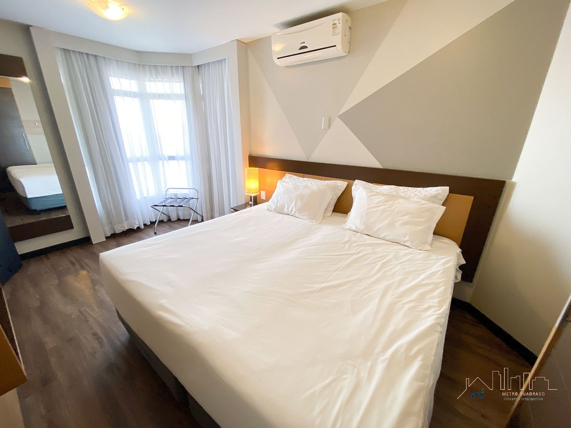 Condomínio dispõe de piscina, academia, lounge de convivência, business center além do serviço de arrumação básica já incluso e recepção 24 horas.