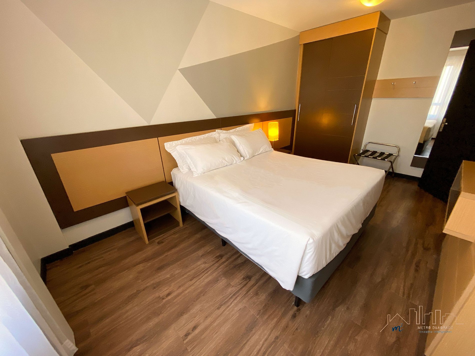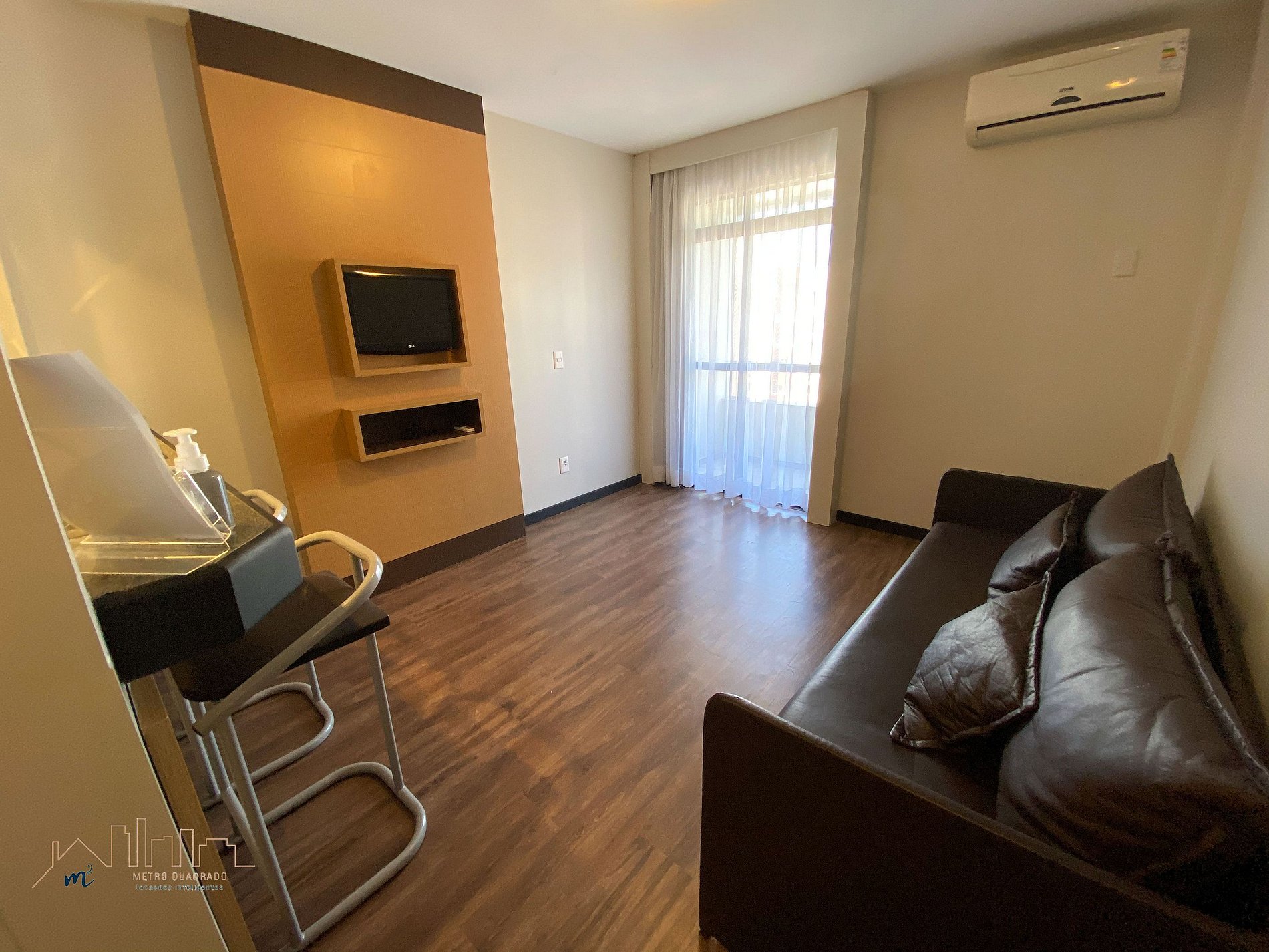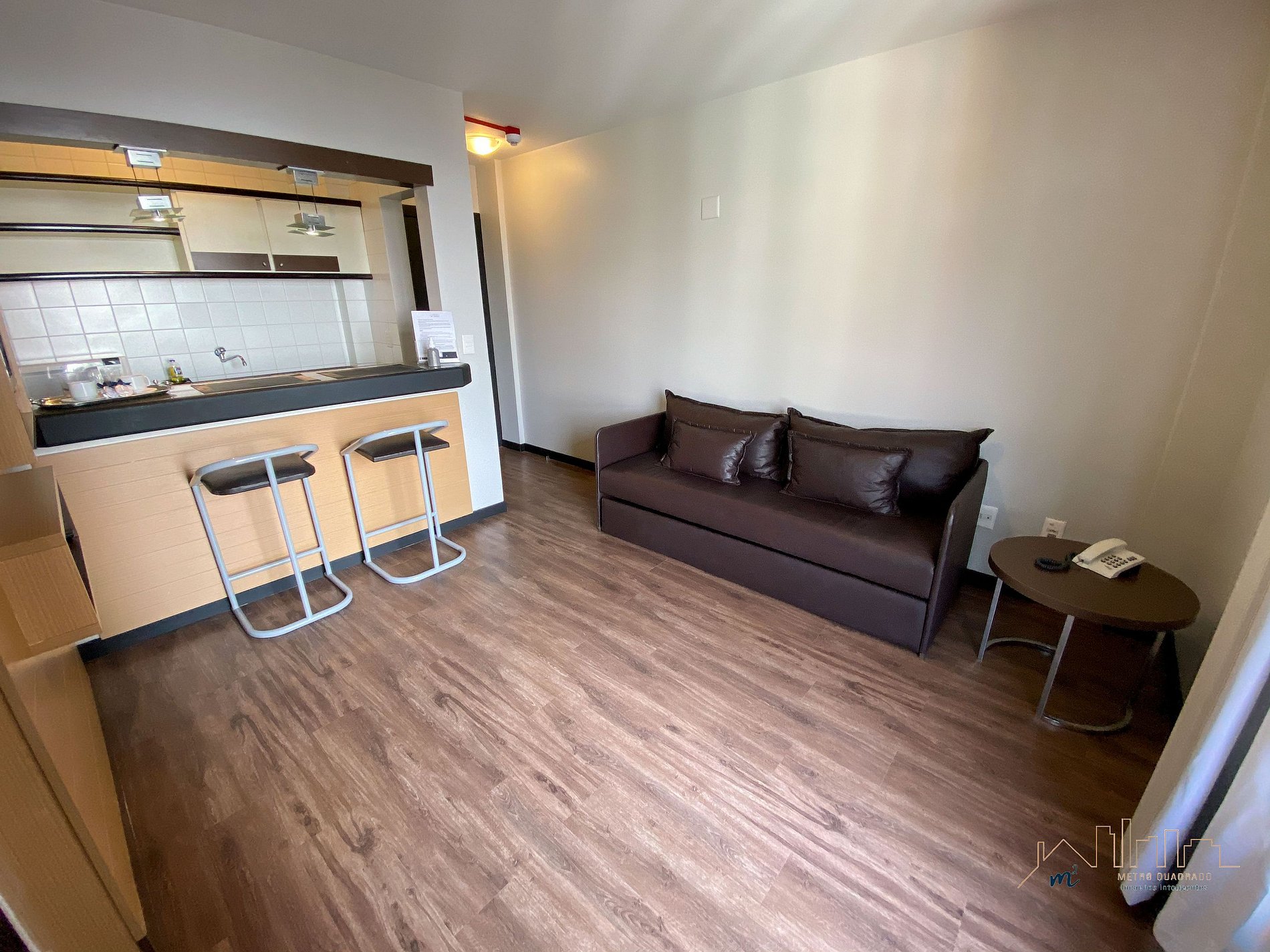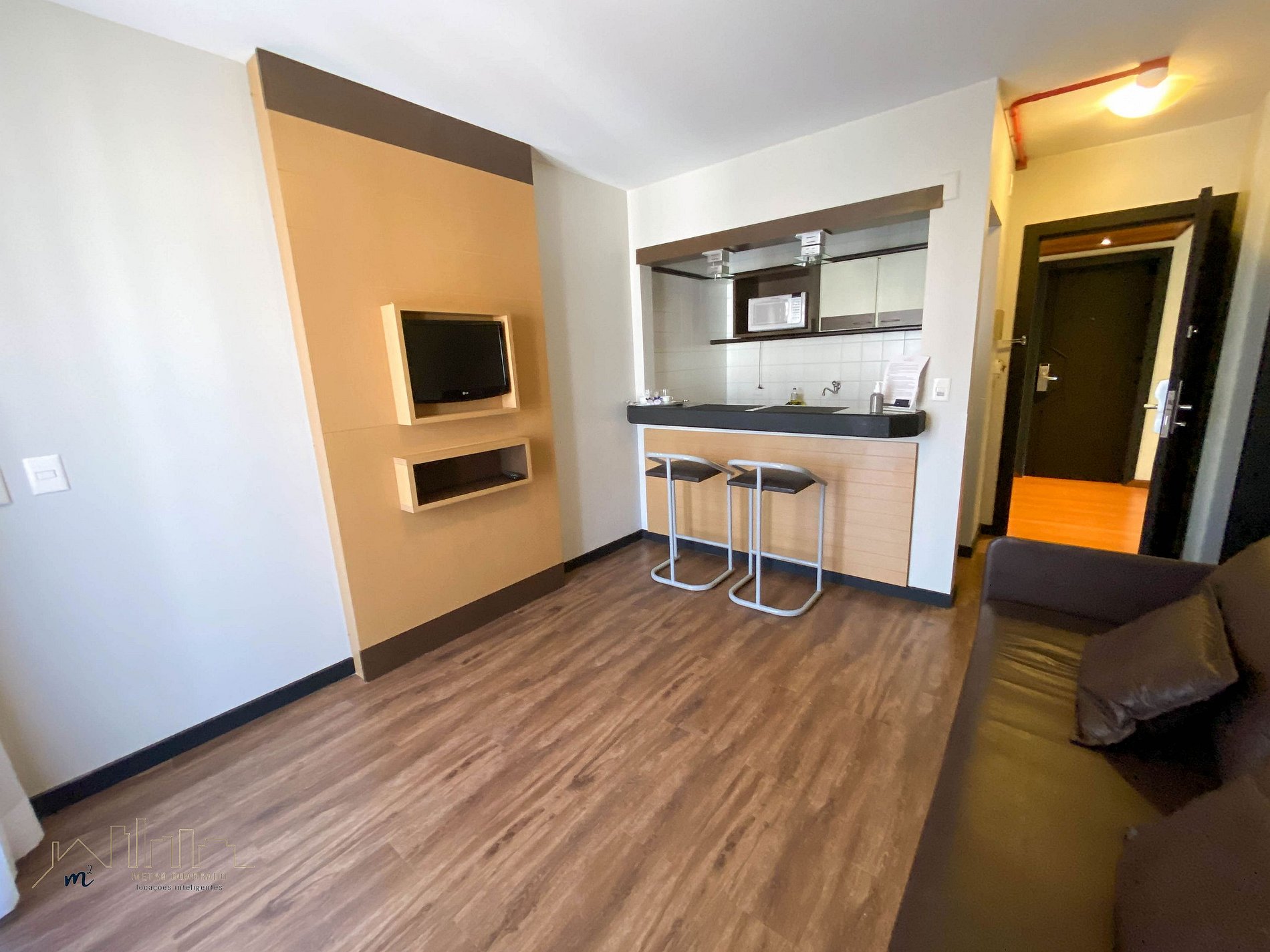 Condomínio dispõe de piscina, academia, lounge de convivência, business center além do serviço de arrumação básica já incluso e recepção 24 horas.