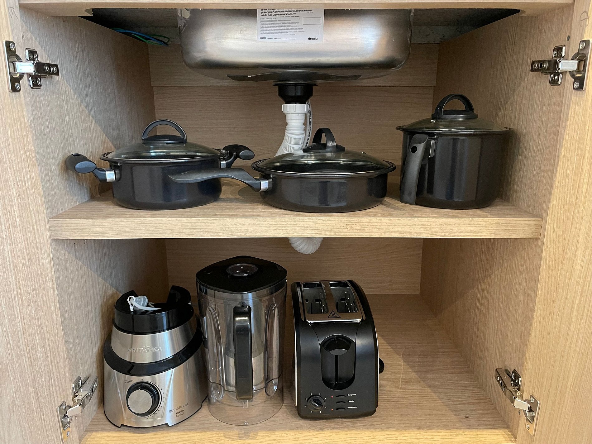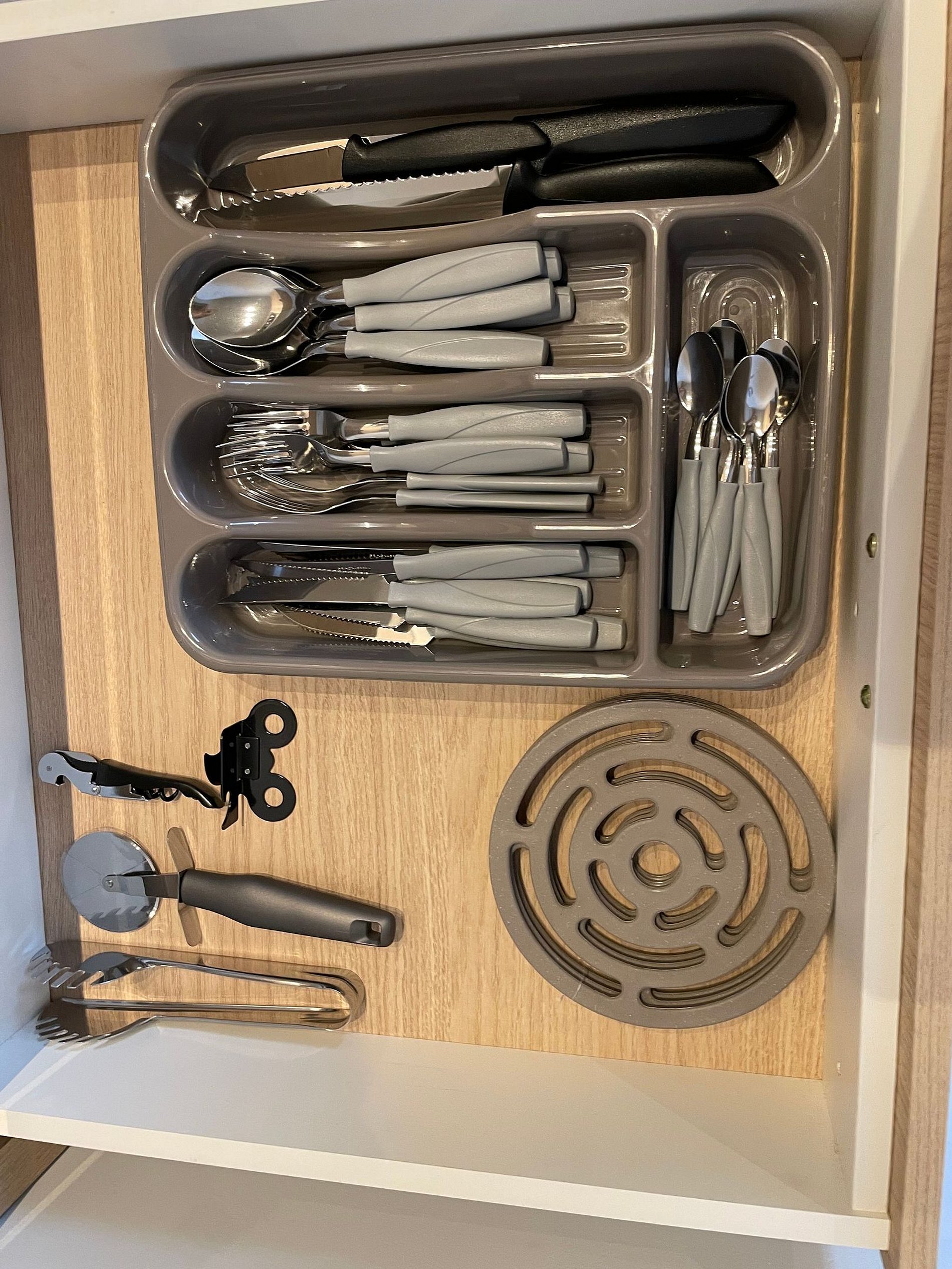 O imóvel é composto por apenas um ambiente no modelo estúdio. Equipado com uma cama queen, armário para roupas com cabideiro, smart tv, sofá e mesa de jantar. Possui também mini cozinha com forno elétrico, microondas, cooktop por indução, frigobar, cafeteira, torradeira, sanduicheira, liquidificador, jogo de jantar, taças, copos, talheres, panelas e outros. Possui também ferro de passar e secador de cabelo.