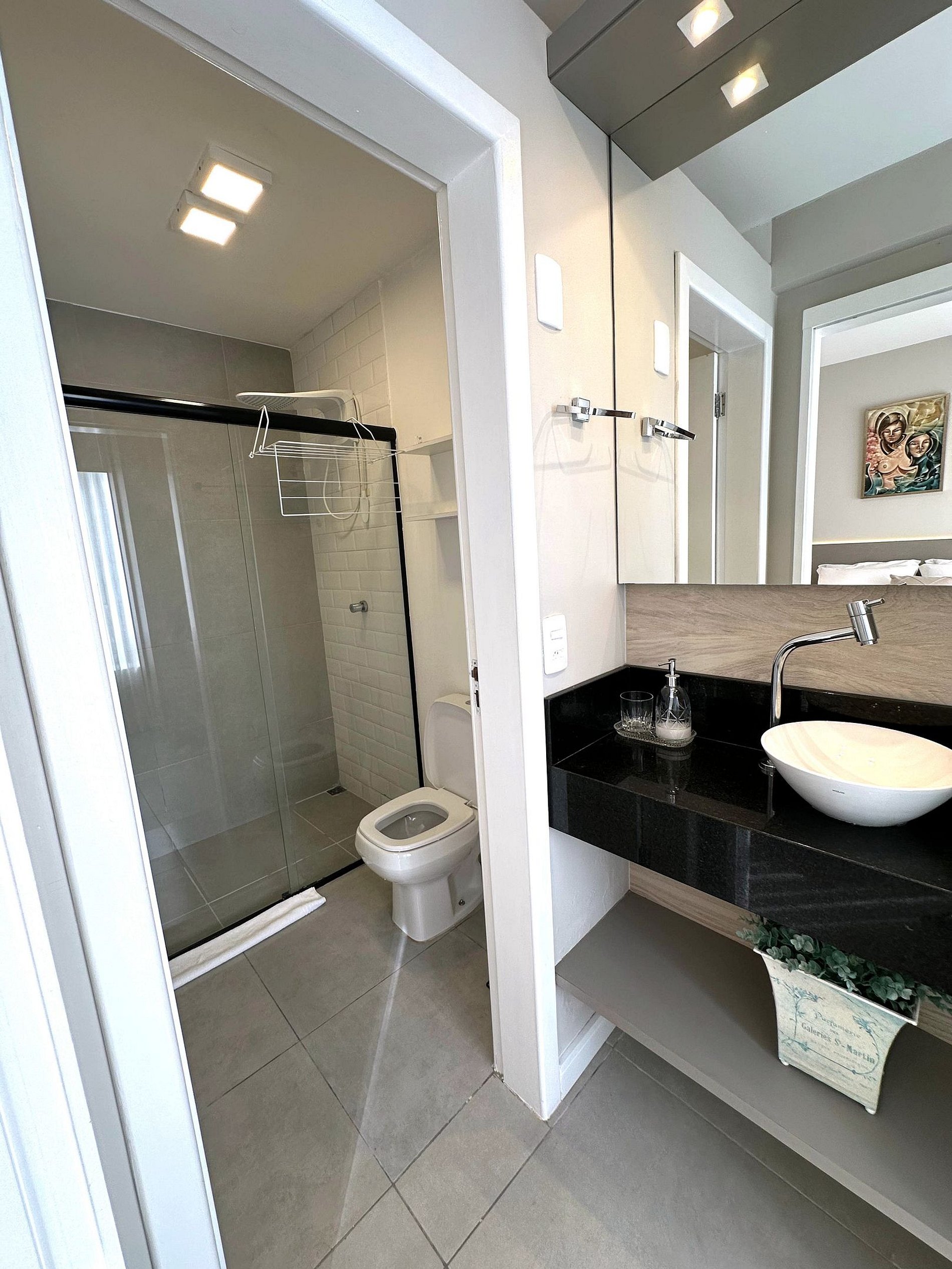 O design clean e moderno torna-o um espaço aconchegante para que se sinta em casa. É perfeito para o conforto de sua hospedagem, o lugar certo para você se encantar ainda mais por Florianópolis.