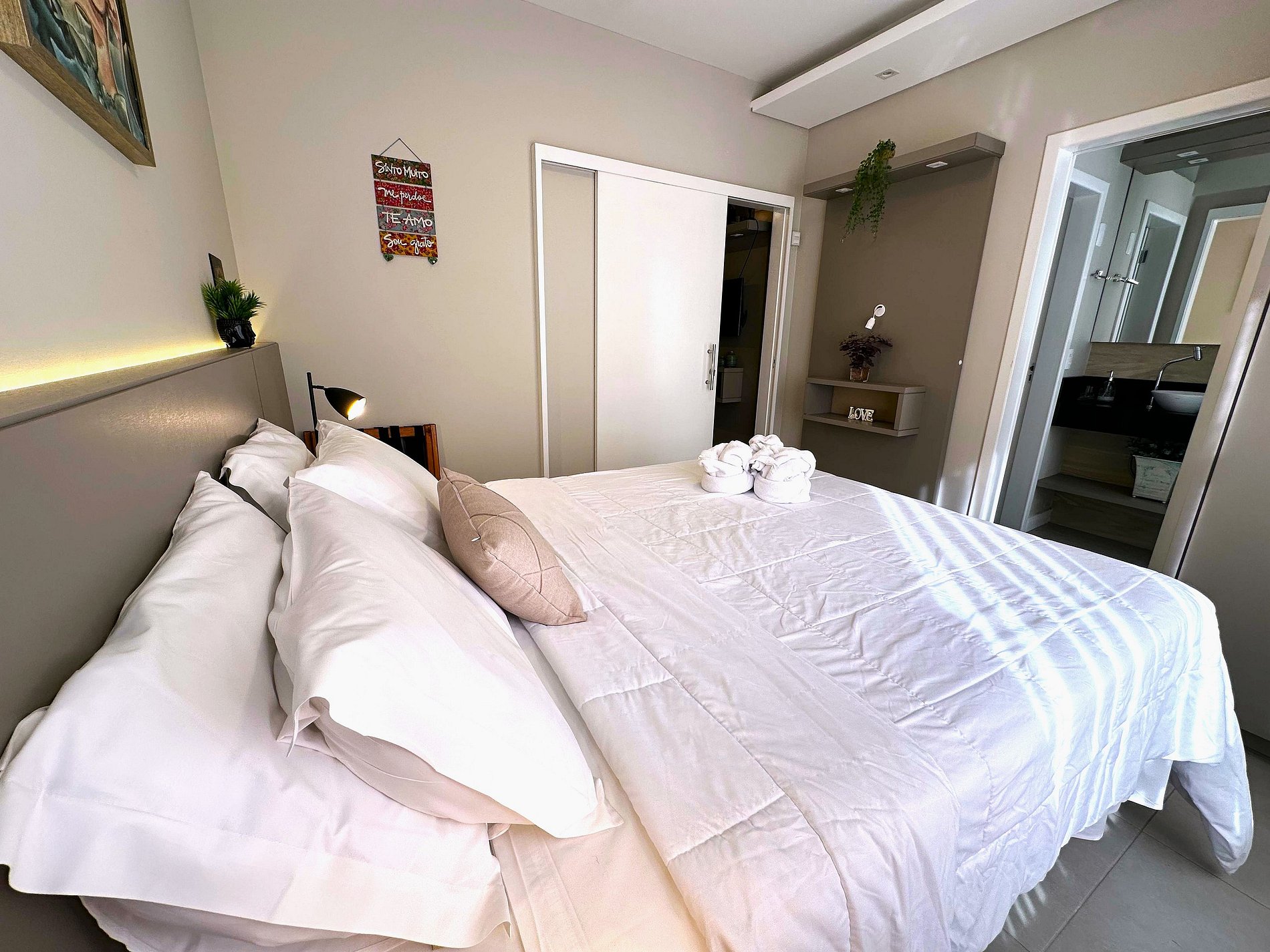 O design clean e moderno torna-o um espaço aconchegante para que se sinta em casa. É perfeito para o conforto de sua hospedagem, o lugar certo para você se encantar ainda mais por Florianópolis.