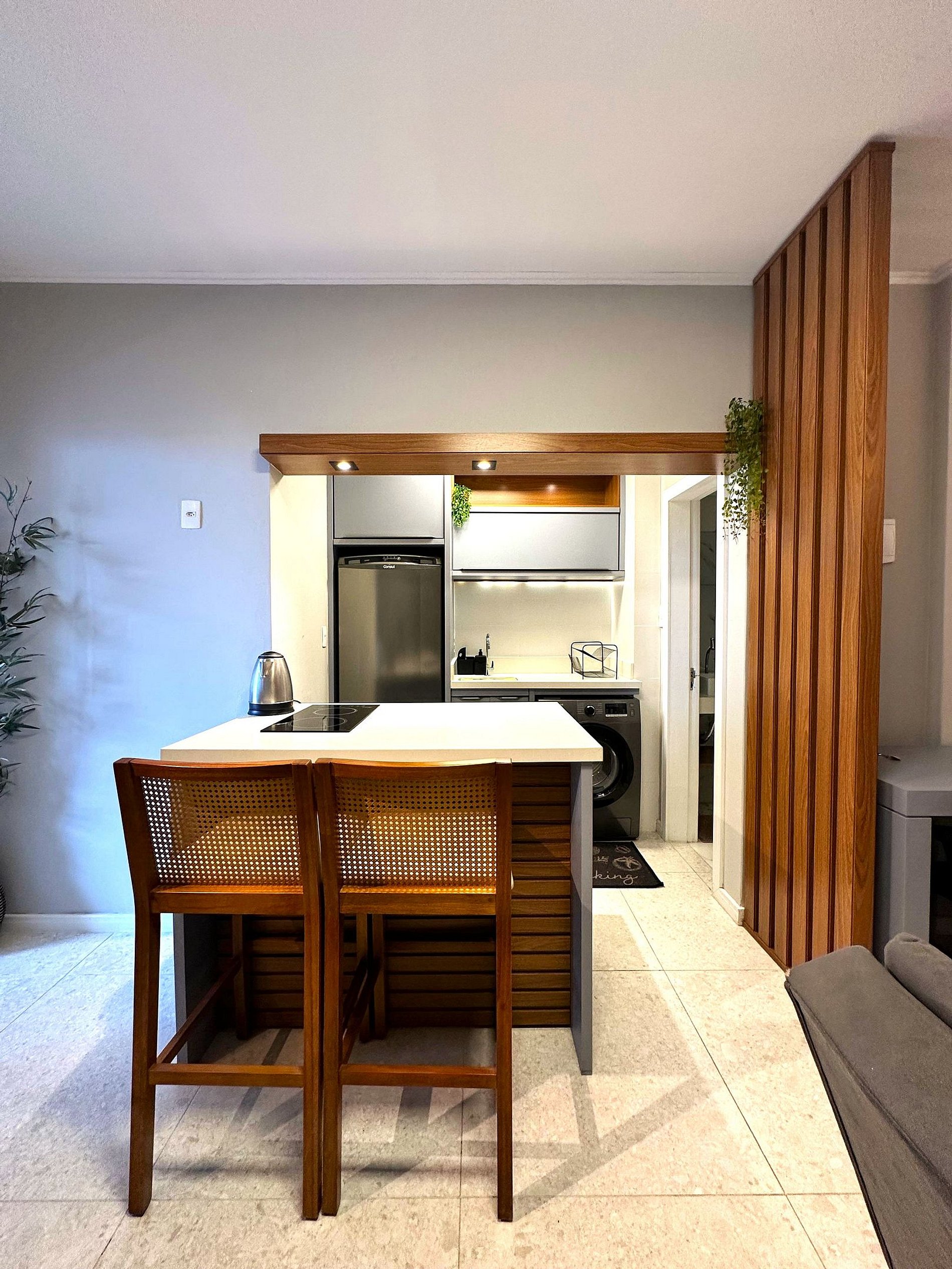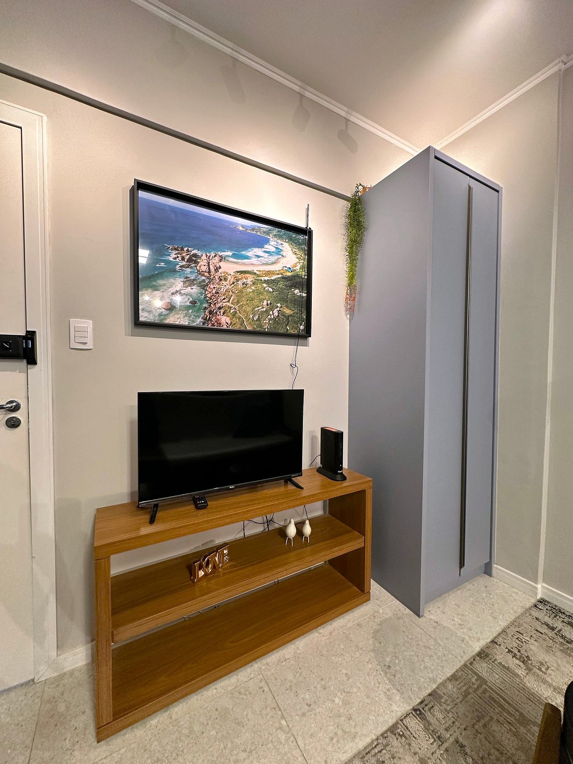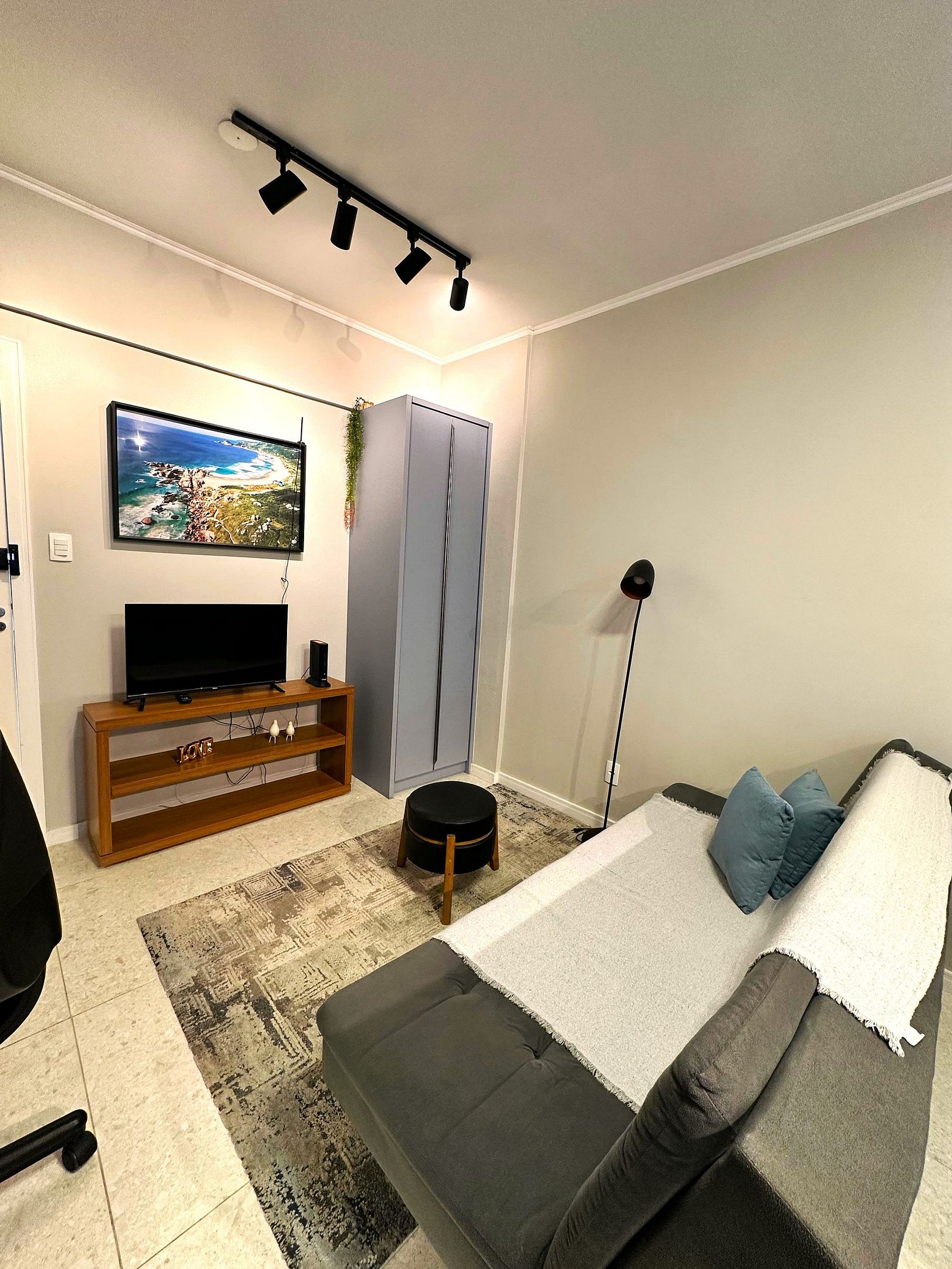 O design clean e moderno torna-o um espaço aconchegante para que se sinta em casa. É perfeito para o conforto de sua hospedagem, o lugar certo para você se encantar ainda mais por Florianópolis.