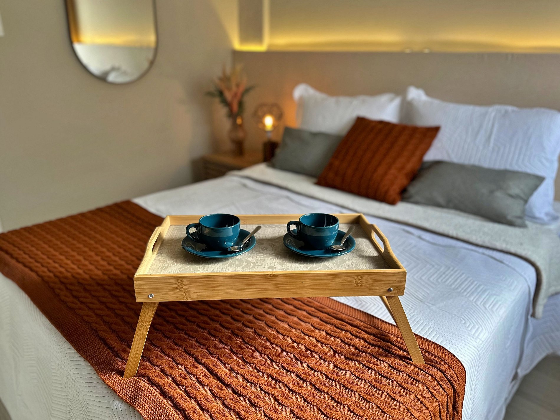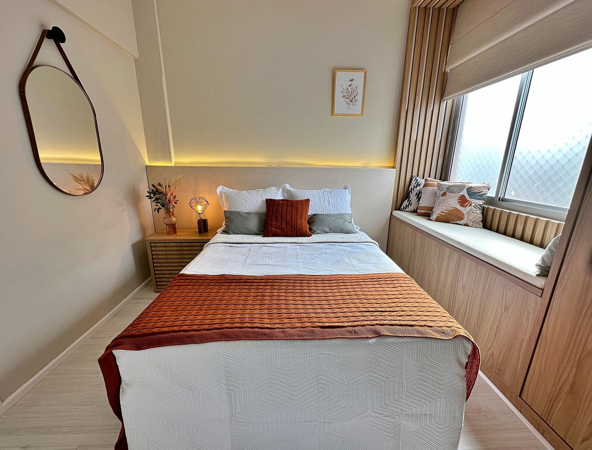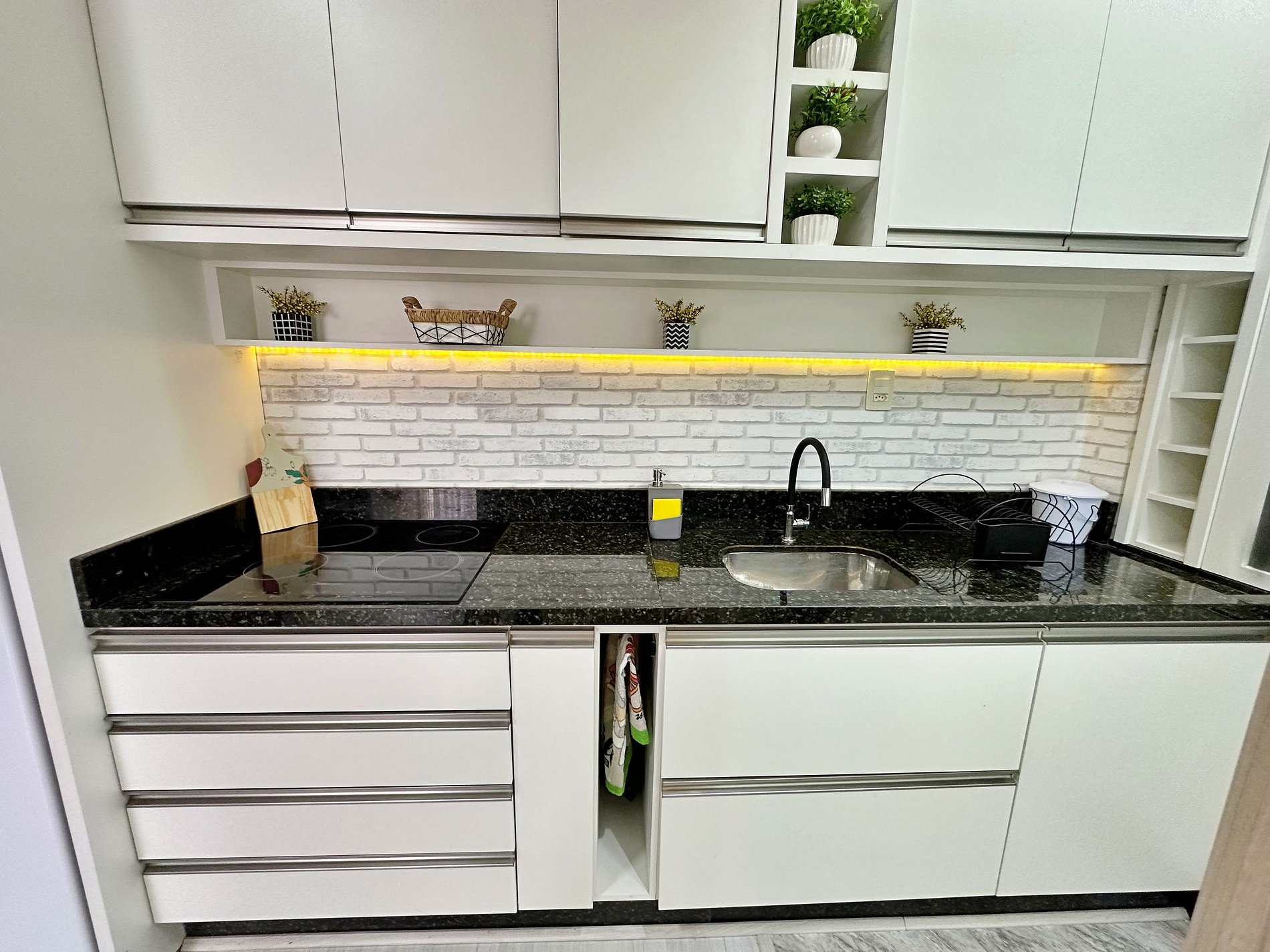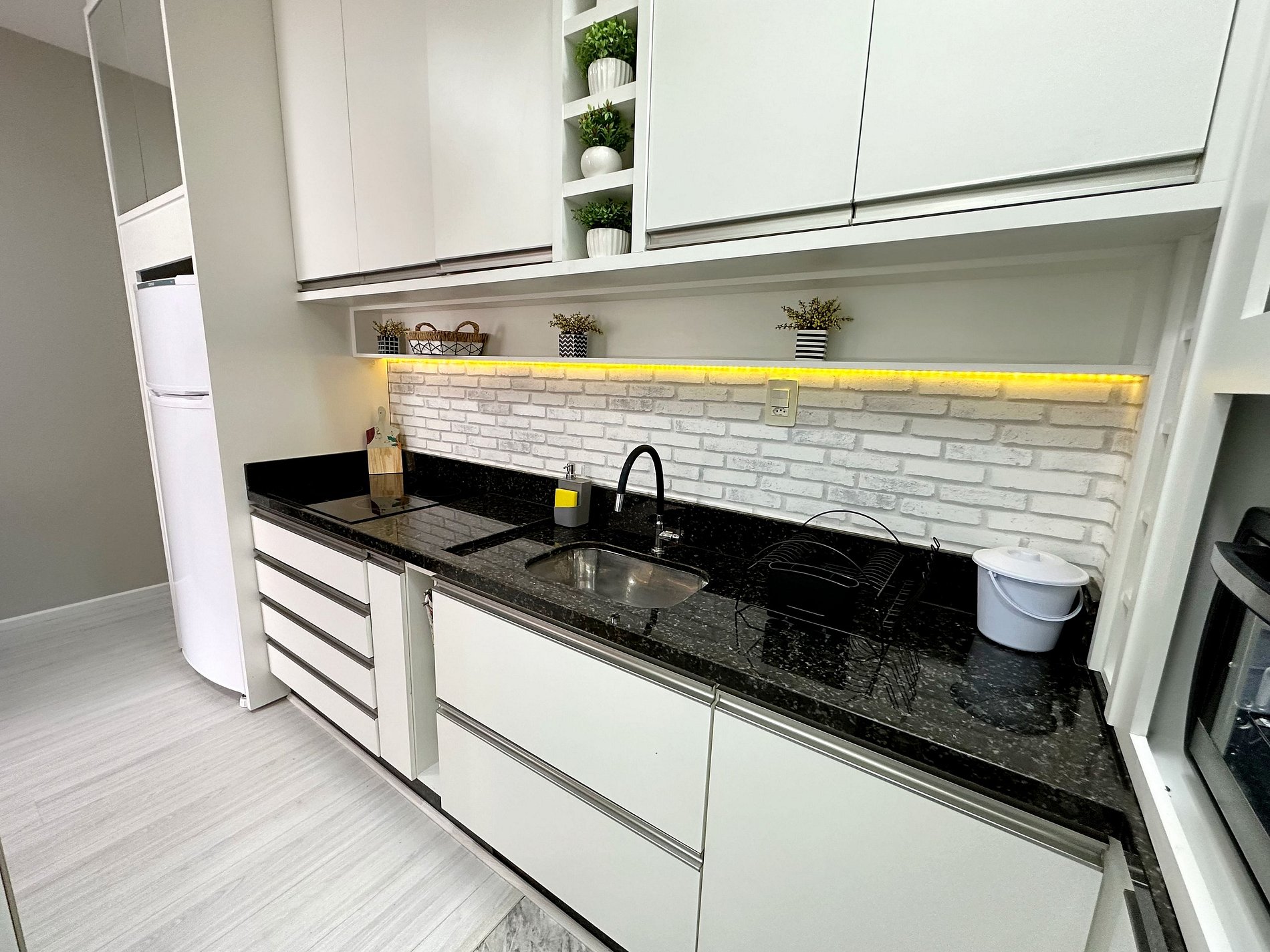 O apartamento possui cozinha completa com fogão por indução 4 bocas, geladeira, micro-ondas, forno-elétrico e pia. Tem a disposição pratos, talheres, copos, xícaras, panelas, chaleira elétrica, liquidificador e cafeteira. Também dispõe de 1 quarto com cama de casal, sala com sofá-cama, espaço para utilização de laptop e banheiro. O sofá-cama da sala é confortável e acomoda 1 pessoa adulta ou 2 crianças. Possui wi-fi próprio.
